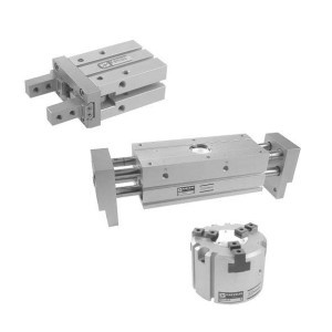 Эти пневмоцилиндры с направляющими отличаются компактными размерами и прекрастными жесткостью и силовыми характеристиками. Они могут использоваться в различных механизмах зажима, перемещения и робототехнике.Также они могут использоваться в качестве управляемых упоров в различных транспортерах.